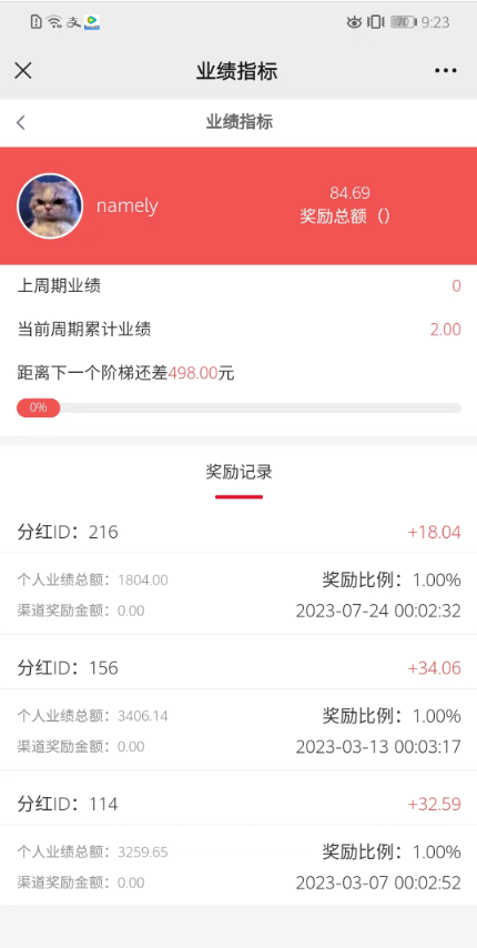会员获得业绩奖励后后台就会有奖励记录